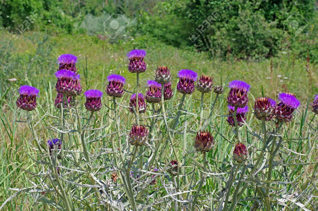 Hoa: lớn, hình đầu, màu tím, mọc đơn độc ở ngọn thân, có các lá bắc cứng, xếp thành nhiều vòng, phần đế hoa dày và mềm (được dùng làm thực phẩm).