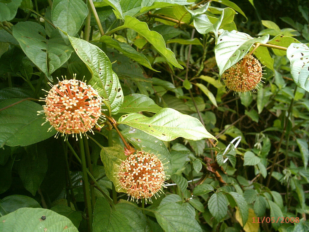 Hoa: mọc thành đầu tròn, nhỏ, màu vàng nhạt hoặc trắng ngà.