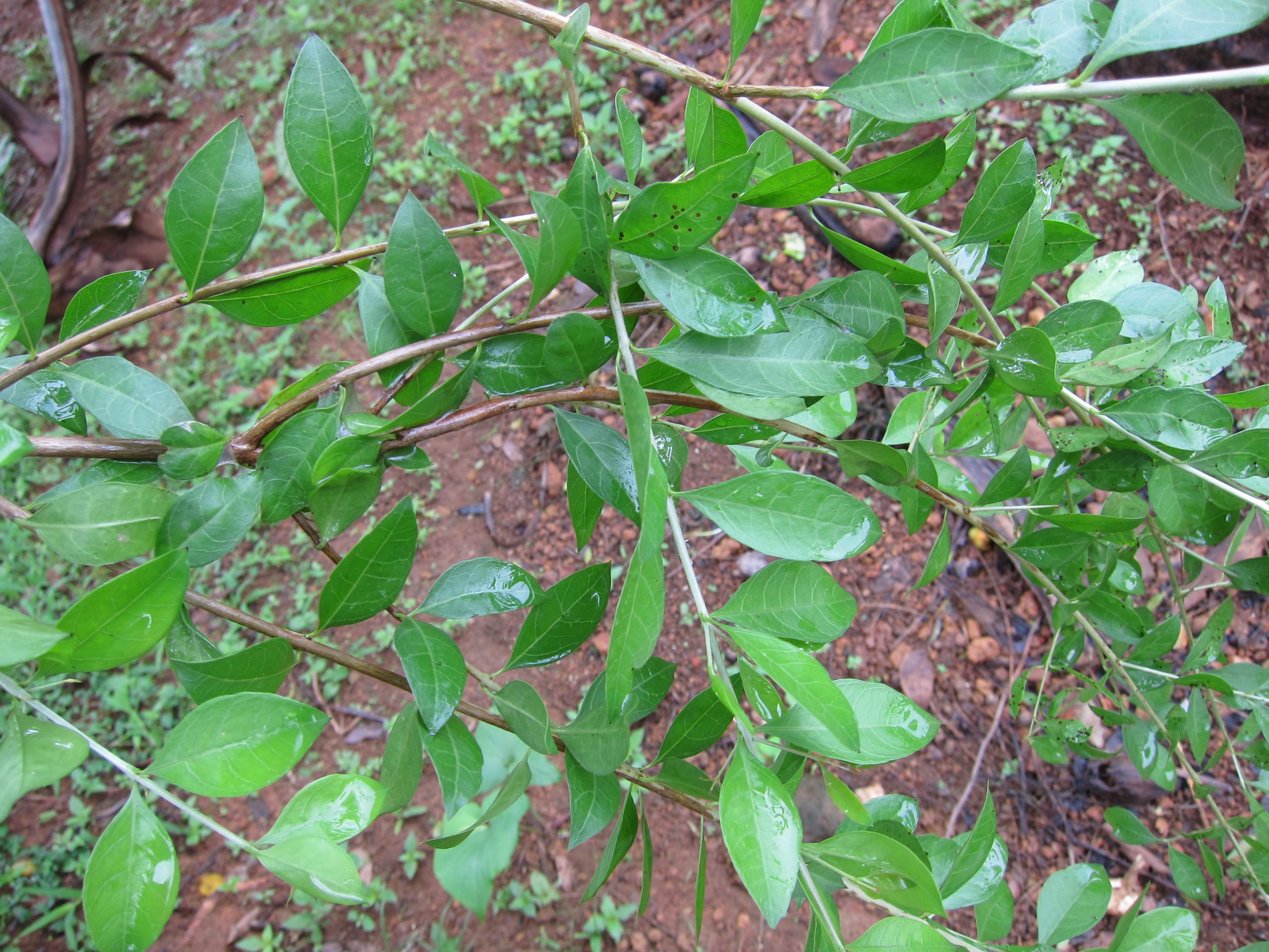 Thân nhẵn, phân nhánh nhiều, cành non màu xanh.