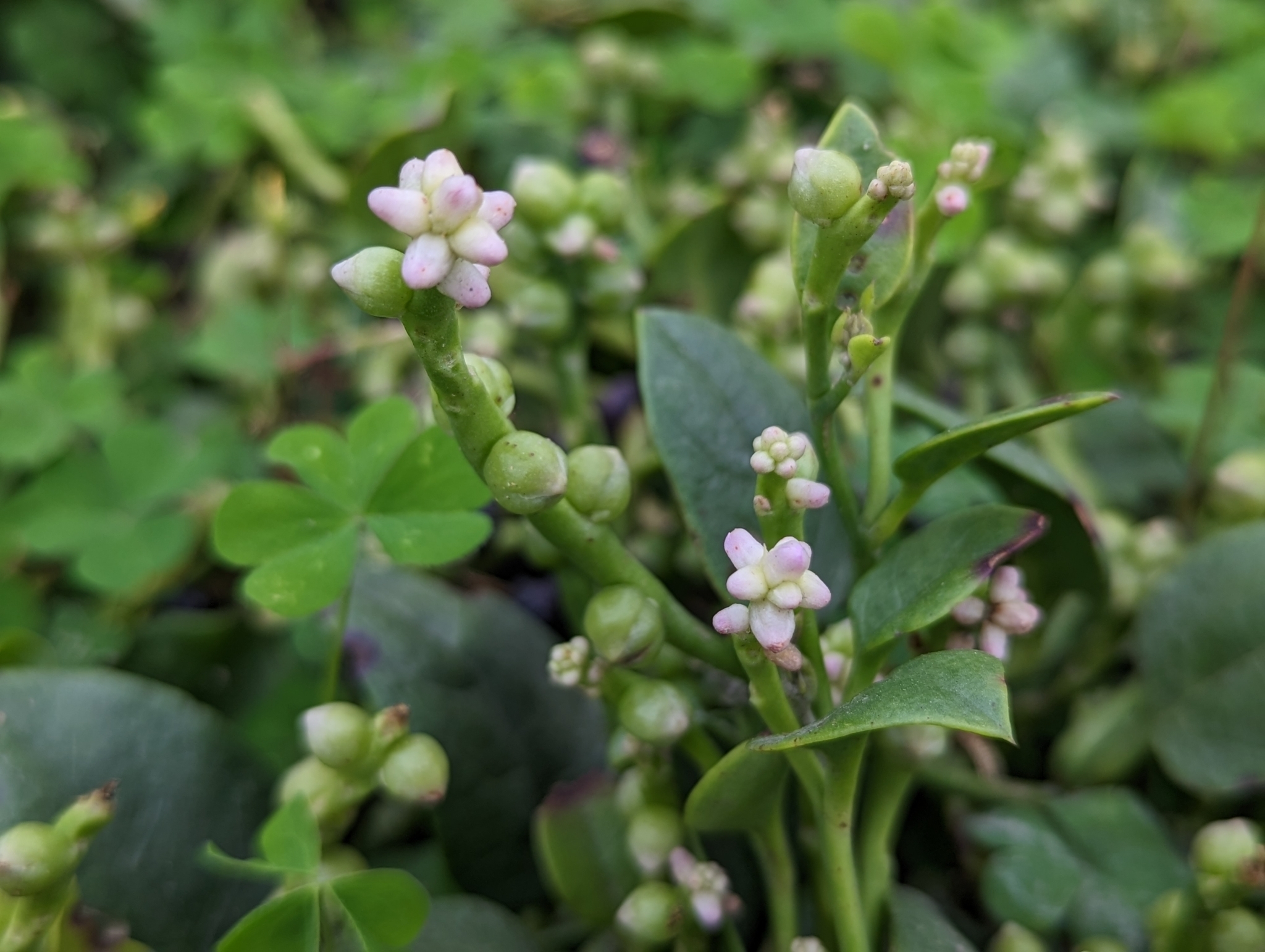 Hoa: nhỏ, màu trắng hồng hoặc đỏ tím, mọc thành chùm ở kẽ lá.