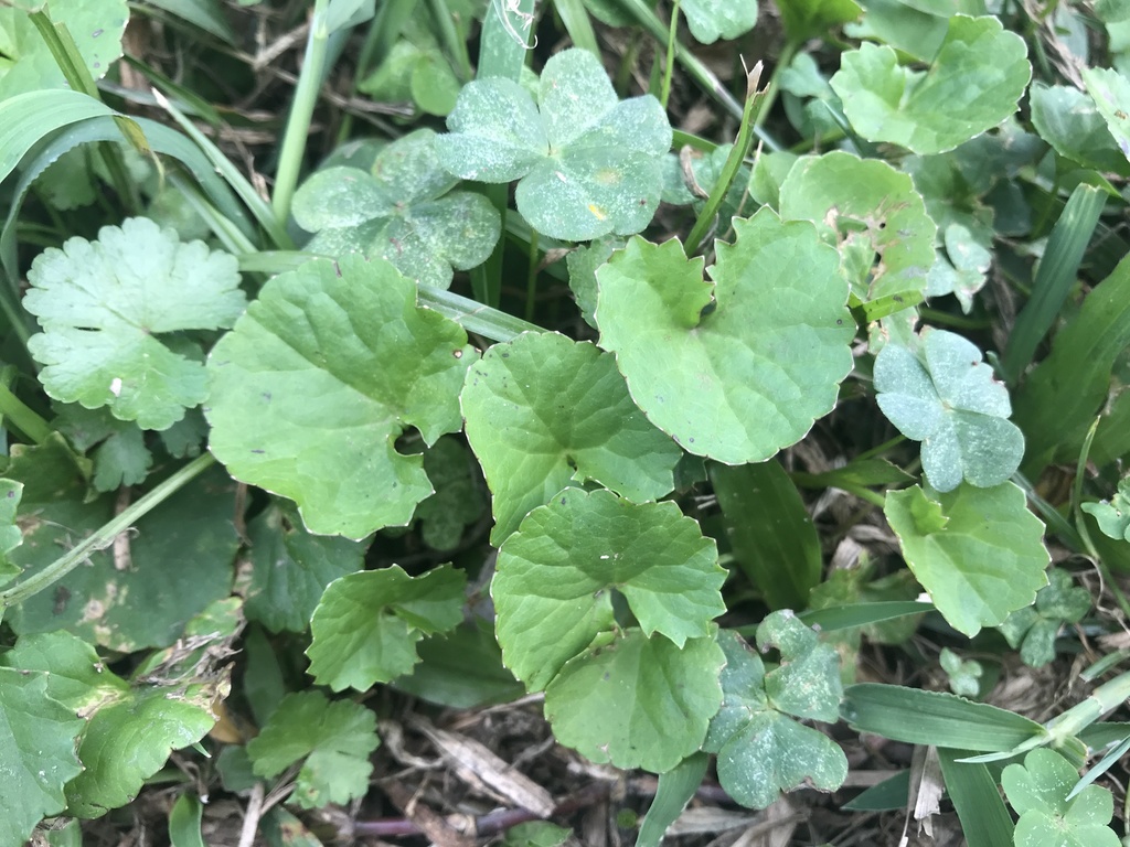 Lá: hình tròn hoặc thận, mép khía răng cưa, cuống dài.